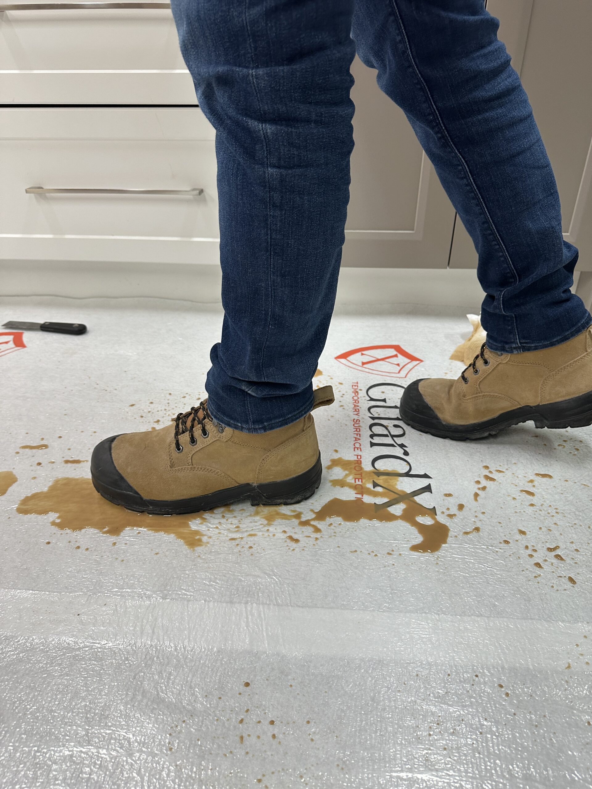 GuardX Fleece Renovator Grade is designed for everyday renovation tasks that need reliable surface protection without the weight of contractor-level products. Its 145 g/m² flexible build, breathable waterproof layer, and anti-slip base make it ideal for painting, light repairs, and interior updates where ease of use and quick installation matter most.